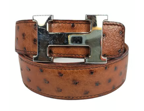 Hermès 32mm ostrich belt with silver buckle. The Hermès belt is coveted by Hermès collectors around the world! This chic and elegant Hermès Constance H belt sophisticated dress has a reversible belt that will go with any outfit. This belt is brown ostrich leather on one side and Gold Box leather on the other. You can always count on Hermès for timeless elegance.